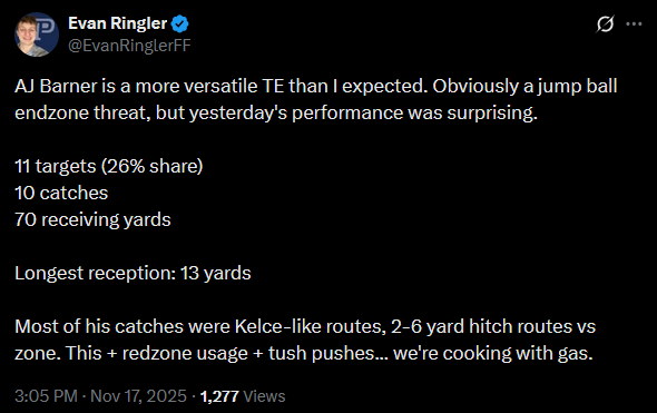 Edward breaks down the trade outlook for RJ Harvey, Drake London, and Tetairoa McMillian heading into Week 12. Find out which players to buy, sell, or hold as you prepare for the final playoff push.