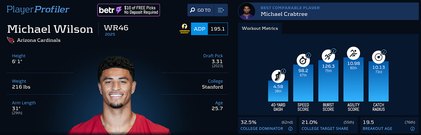 Run it back with Michael Wilson as PlayerProfiler’s Sleeper of the Week for the second consecutive Sunday Slate. Our own Matty Kiwoom will be representing PlayerProfiler at the Senior Bowl once again in 2026.