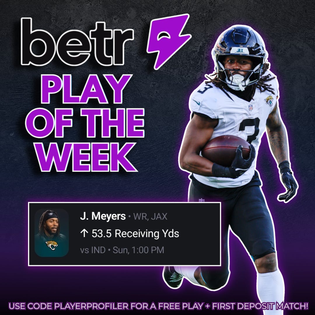 Jakobi Meyers has surged since the trade deadline with six targets and over fifty yards in three straight games and now faces a Colts defense likely missing Sauce Gardner. Take advantage of his rising role and lock in your Betr play with promo code: PLAYERPROFILER