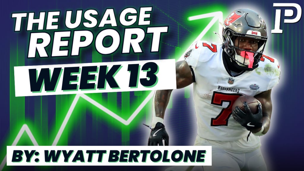 Week 13 Fantasy Football Usage Report - Wyatt Bertolone