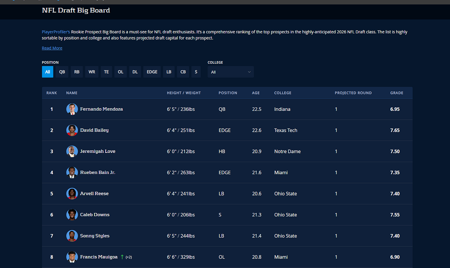 Not only can you track the projected draft capital of the fantasy football studs you’ve had an eye on, but the PlayerProfiler Big Board is also a must for every NFL draft junkie.
