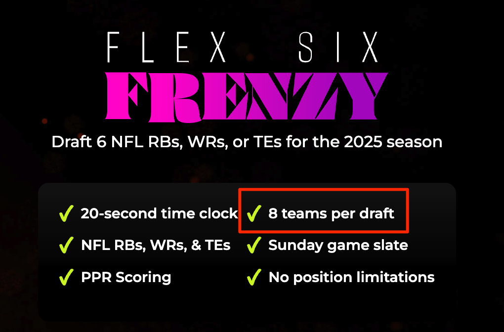 1. Flex 6 Frenzy DFS Now 8-Team Drafts